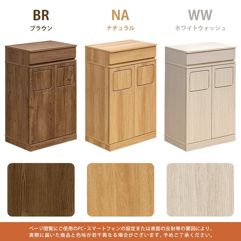 ブラウン(BR)、ナチュラル(NA)、ホワイトウォッシュ(WW)の3色展開です