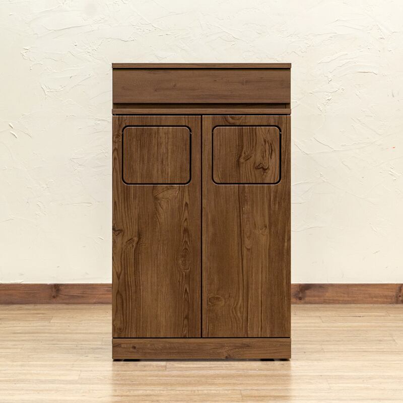 パッと見ゴミ箱らしくないスマートなデザインの木目柄ダストボックスです