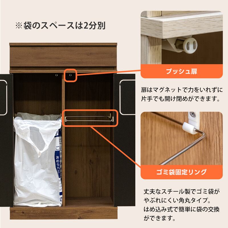 ゴミ袋は、それぞれ中のリングにセットするだけ簡単構造です