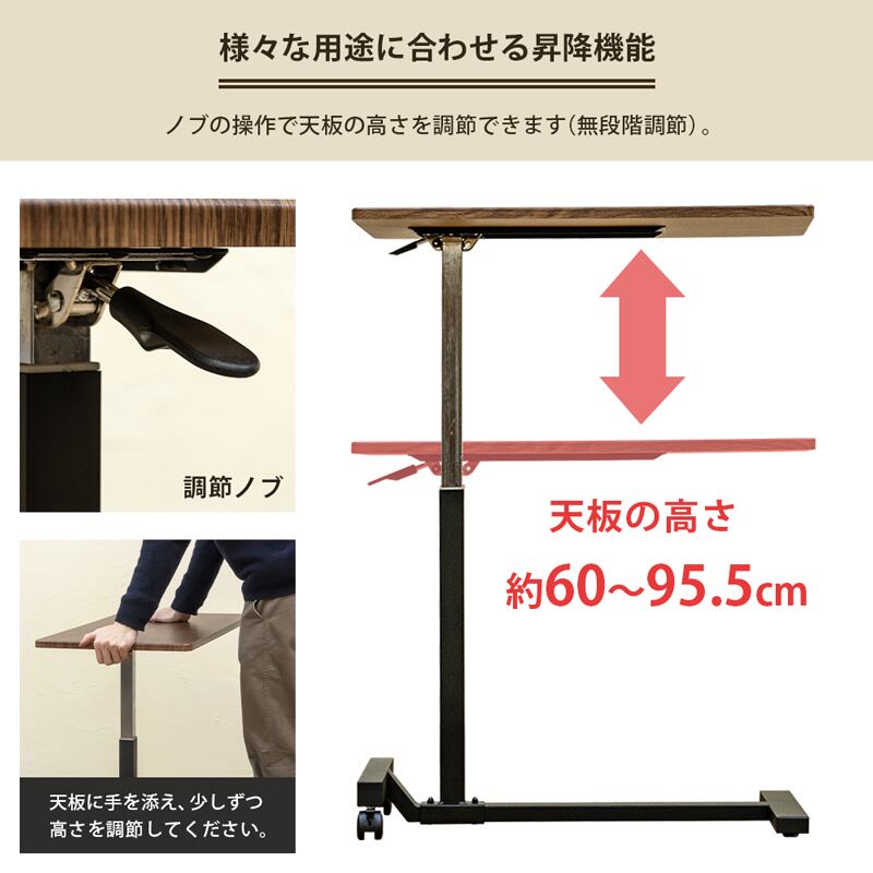 天板下の調節ノブで高さ調節できます。(無段階調節)