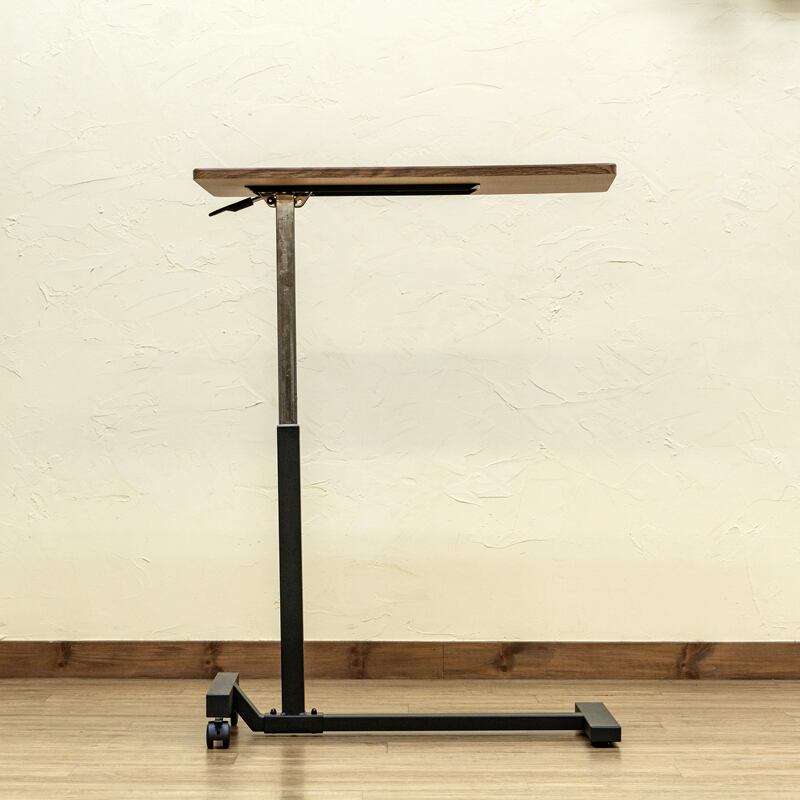 ソファやベッドサイドでさしこむように設置できるスチール脚のサイドテーブル。
