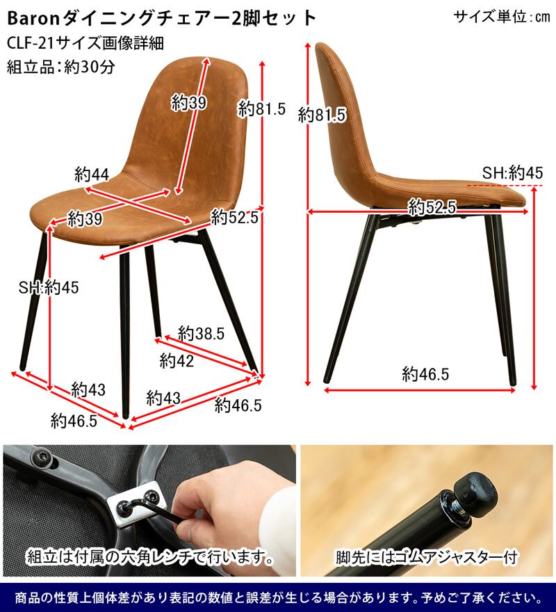 Baron ダイニングチェア 2脚セット BK/CBR/DBR/GR