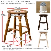 マホガニー ラウンドスツール 46cm BR/WW/WAL