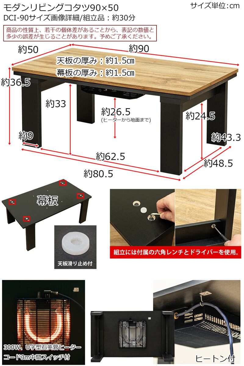 モダンリビングコタツ 90×50 OAK/VBR/WAL/MWH