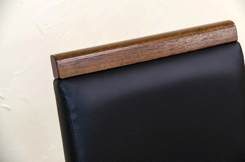 背もたれの先にはアクセントも兼ねた、手触りのよい木を使用しています。