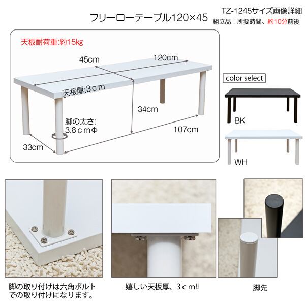 【離島発送不可】【日付指定・時間指定不可】フリーローテーブル 120×45 BK/WH