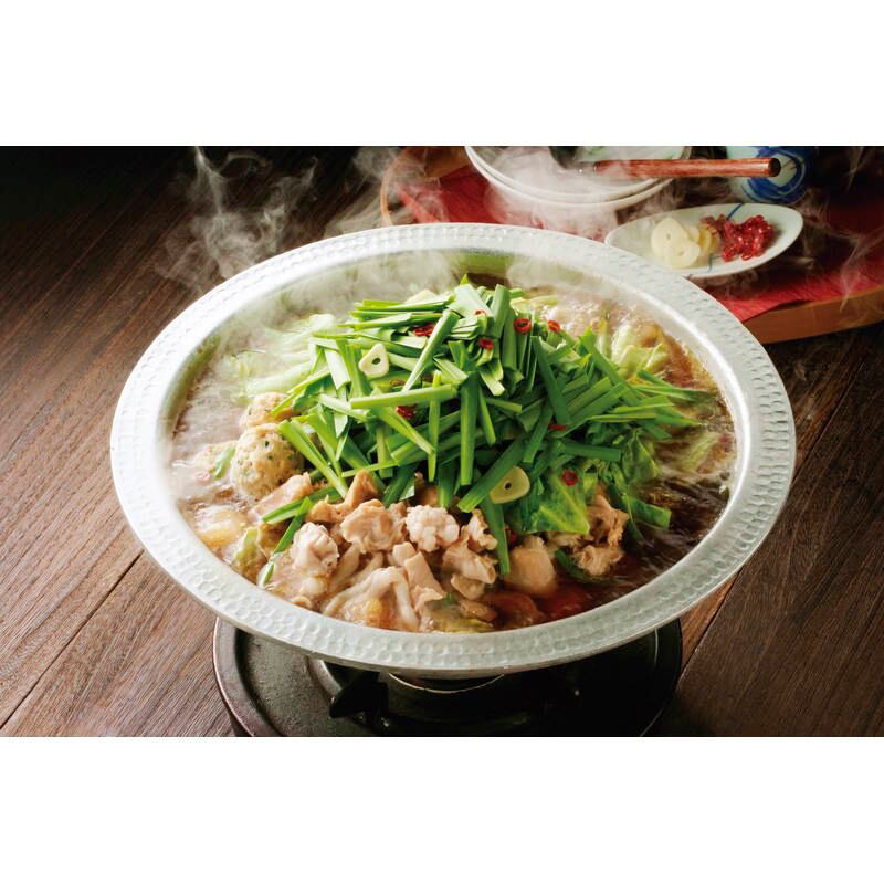 九州産「華味鳥」のハラミと牛小腸を組み合わせたオリジナルのもつ鍋セット。ちゃんぽん麺でしめくくるところまで博多の醍醐味をご家庭でたっぷり楽しんでいただけるセットです。