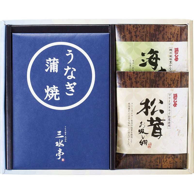三水亭 三河一色産うなぎの蒲焼半身×1、浜乙女 松茸お吸物・浜乙女 海苔お吸物各2袋×各1