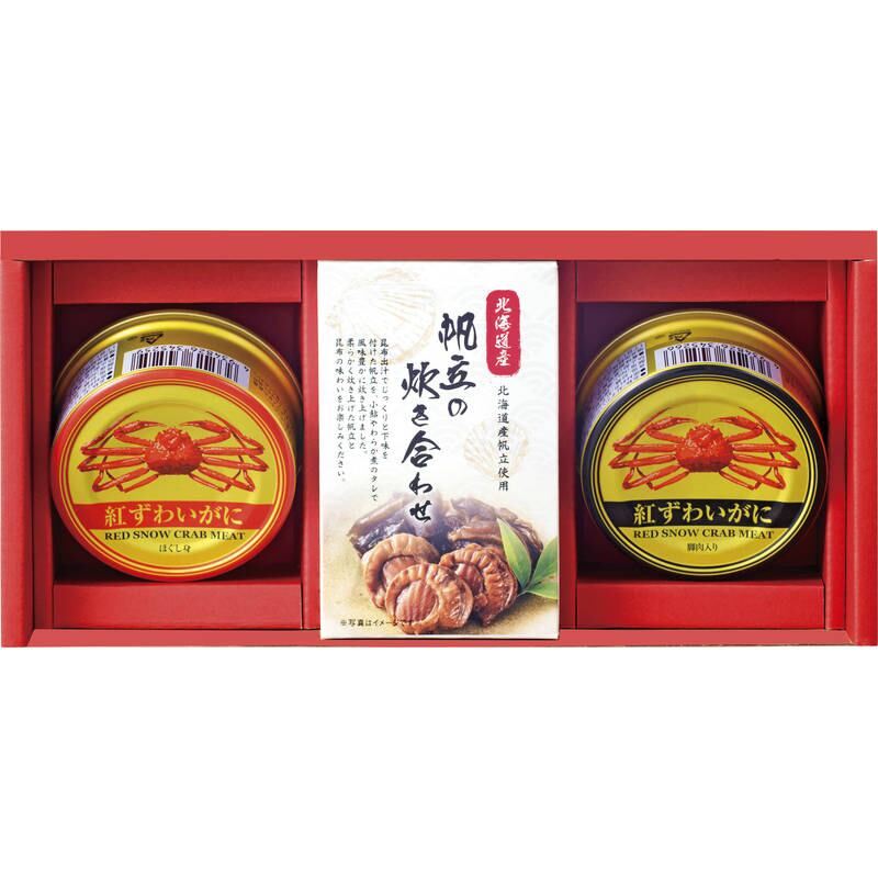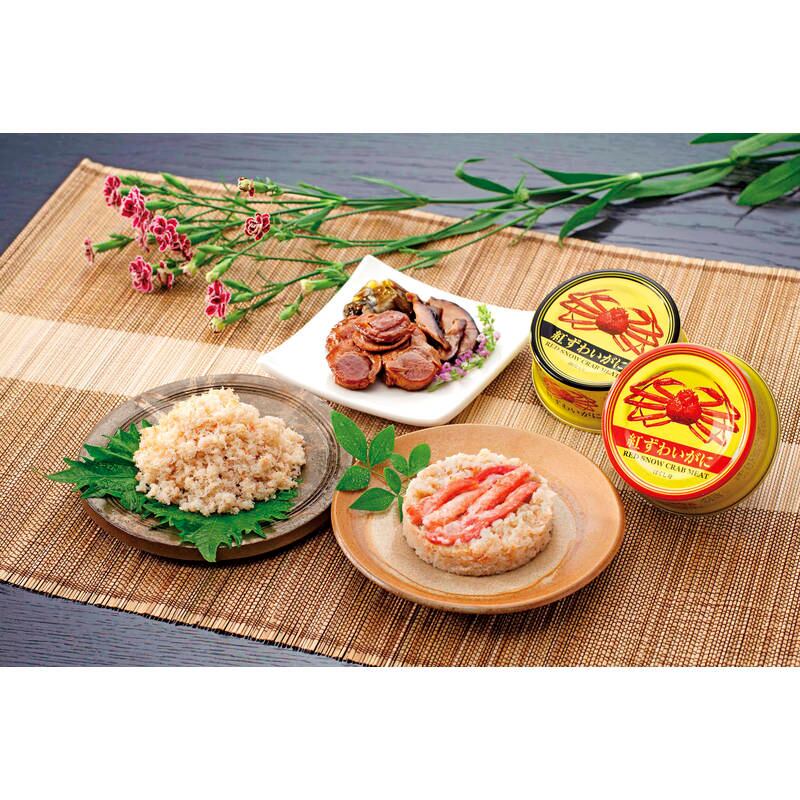 国内製造の紅ずわいがにのカニ缶と北海道産の帆立を使用した炊き合わせはいつもの食卓を贅沢に彩るギフトセットです。