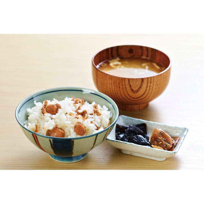 薄味ながら、しっかりとした旨みが自慢の釜めしの素です。北海道産帆立を使用。
