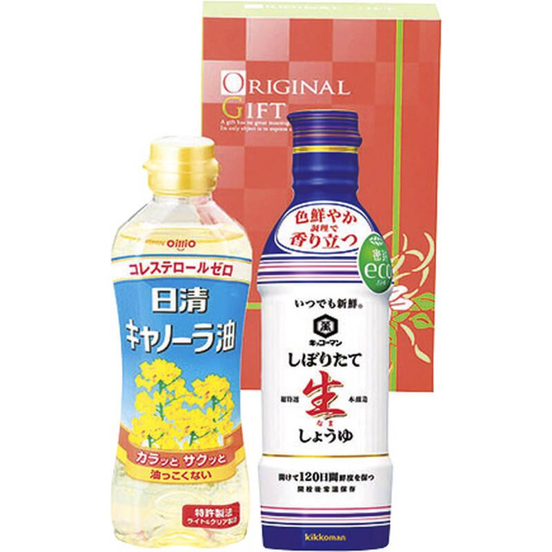 日清キャノーラ油350g・キッコーマンしぼりたて生しょうゆ450mL×各1