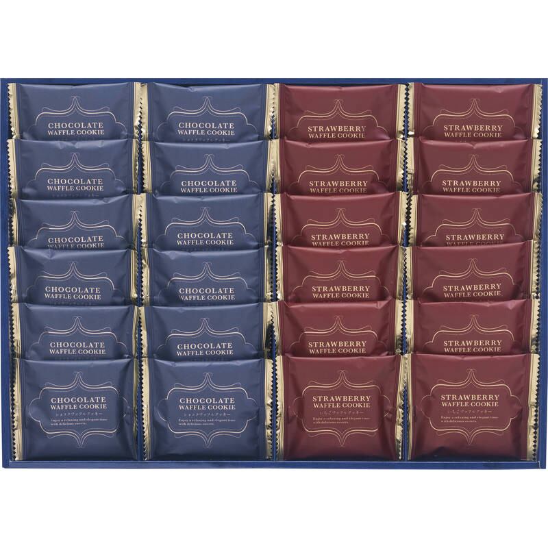 サクサク食感のワッフルクッキーにホワイトチョコクリームを詰めた風味豊かなショコラワッフルクッキーといちごチョコクリームを詰めたいちごワッフルクッキーの詰合せです。
