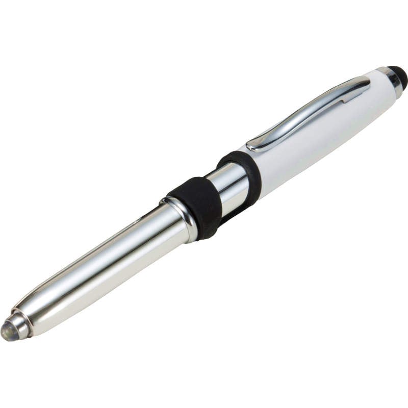 スマホスタンド、タッチペン、ライト、ボールペンの4つの機能が1つになったボールペン。