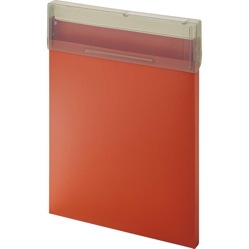 フタが大きく開いて、書類の出し入れがスムーズです。・A4クリアホルダーが収納できてリュックやトートバッグでも出し入れしやすいタテ型。・フタは本体色に馴染むスモークグレー、見出し付きです。・適正収納枚数/コピー用紙150枚