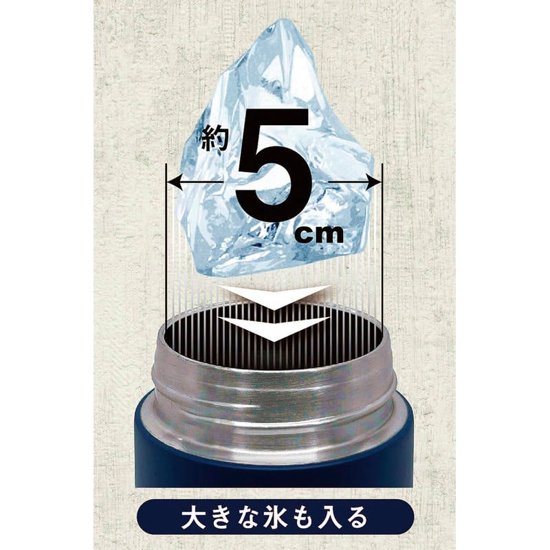 真空構造でおいしい飲み頃長持ち!大きな氷もラクラク入る大口径。氷ストッパー付。・保温効力/6時間:62℃以上・保冷効力/6時間:10℃以下