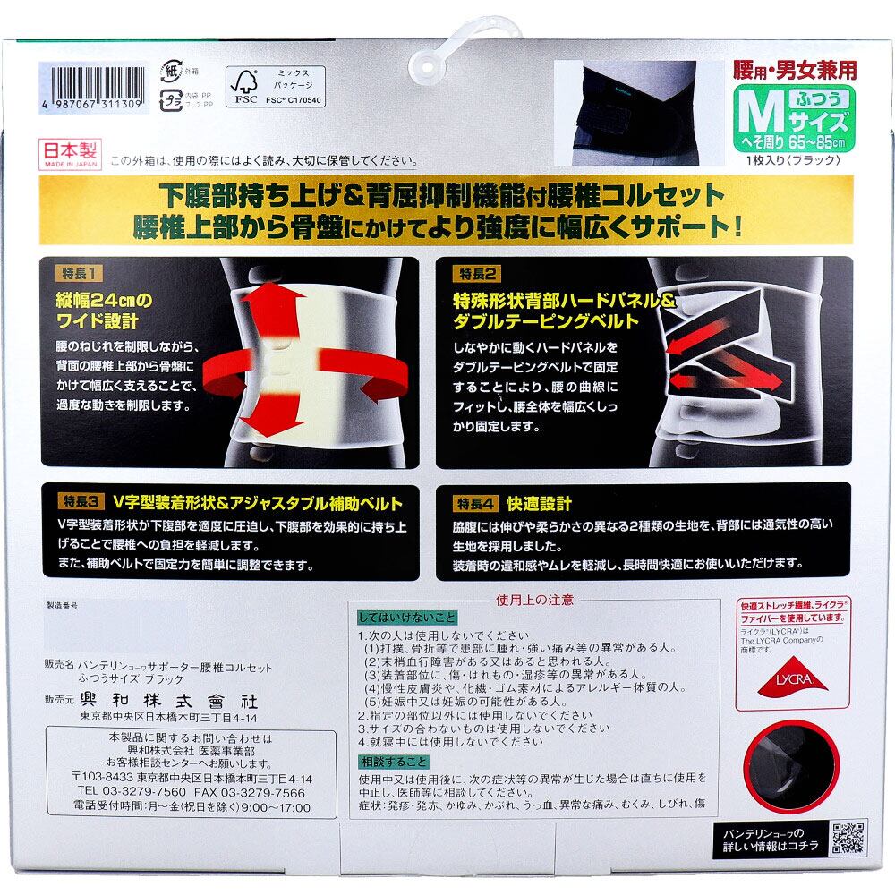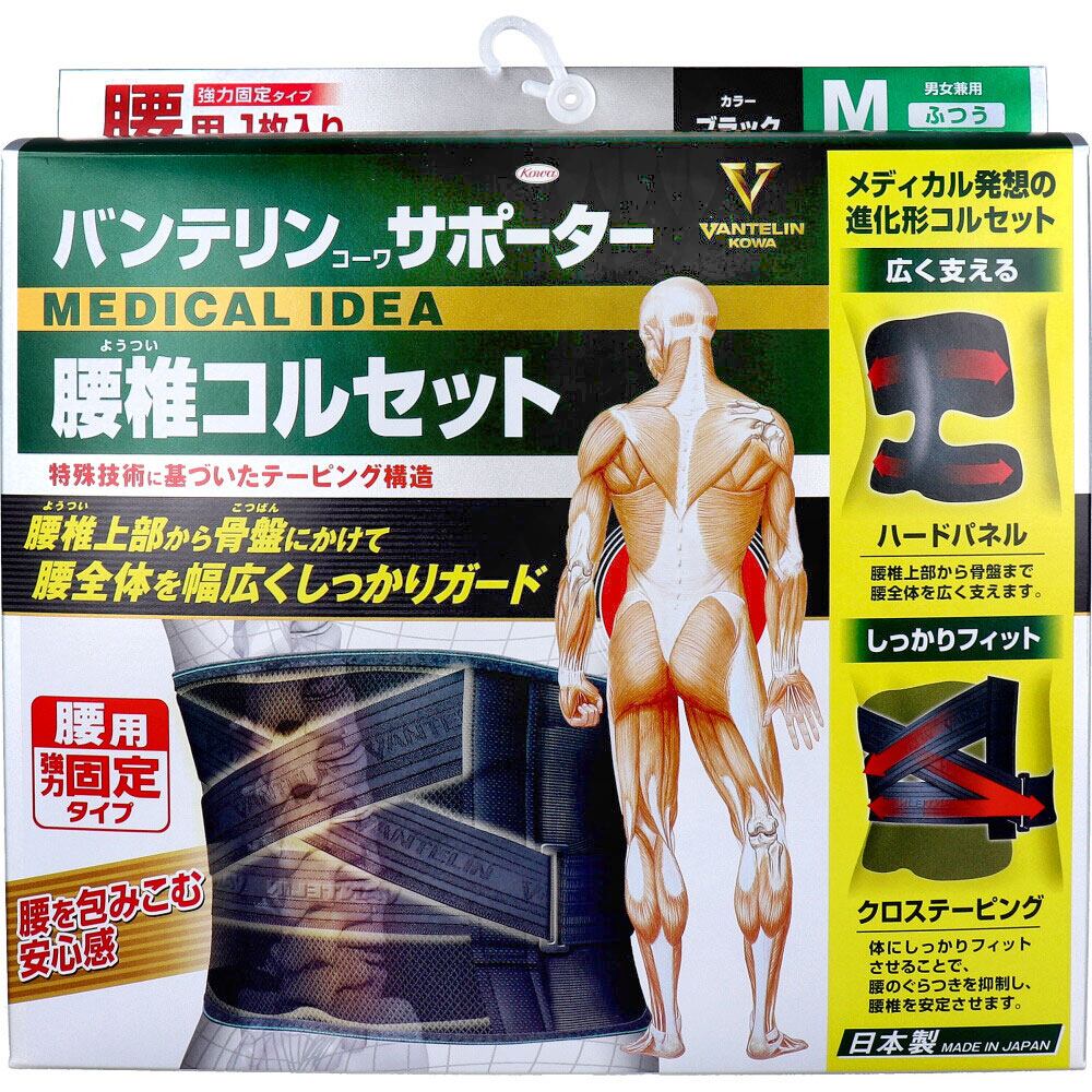 バンテリンコーワ サポーター 腰椎コルセット 腰用 強力固定タイプ ブラック Mサイズ 1枚入