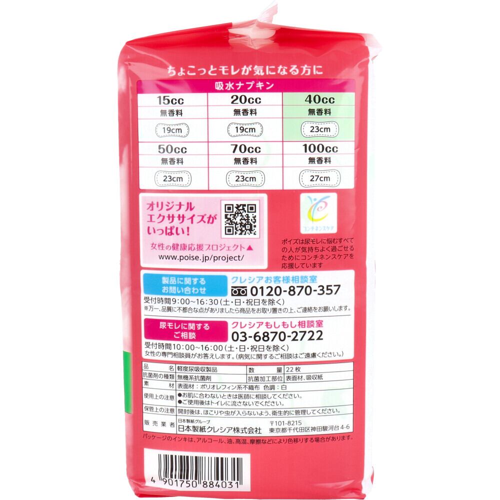 ポイズ さらさら吸水 吸水ナプキン 無香料 40cc 22枚入