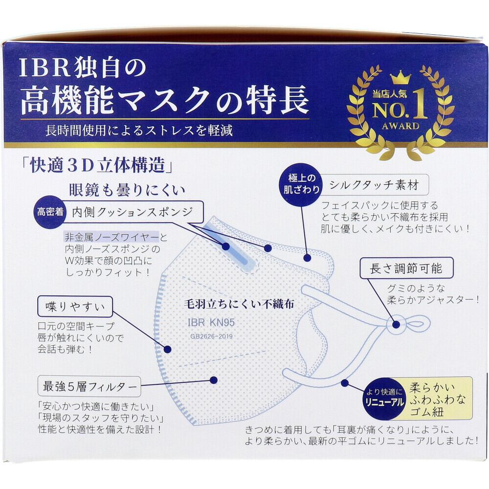 【業務用】KN95ベーシック 立体構造高機能マスク 個別包装 レギュラーサイズ ホワイト 20枚入