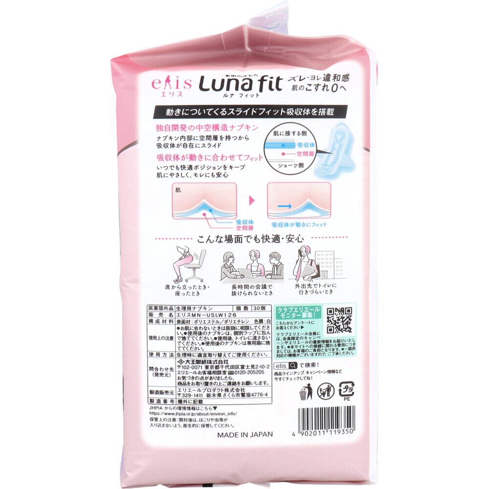 エリス 素肌のきもち ルナフィット 特に多い昼用 羽つき 27cm 30個入