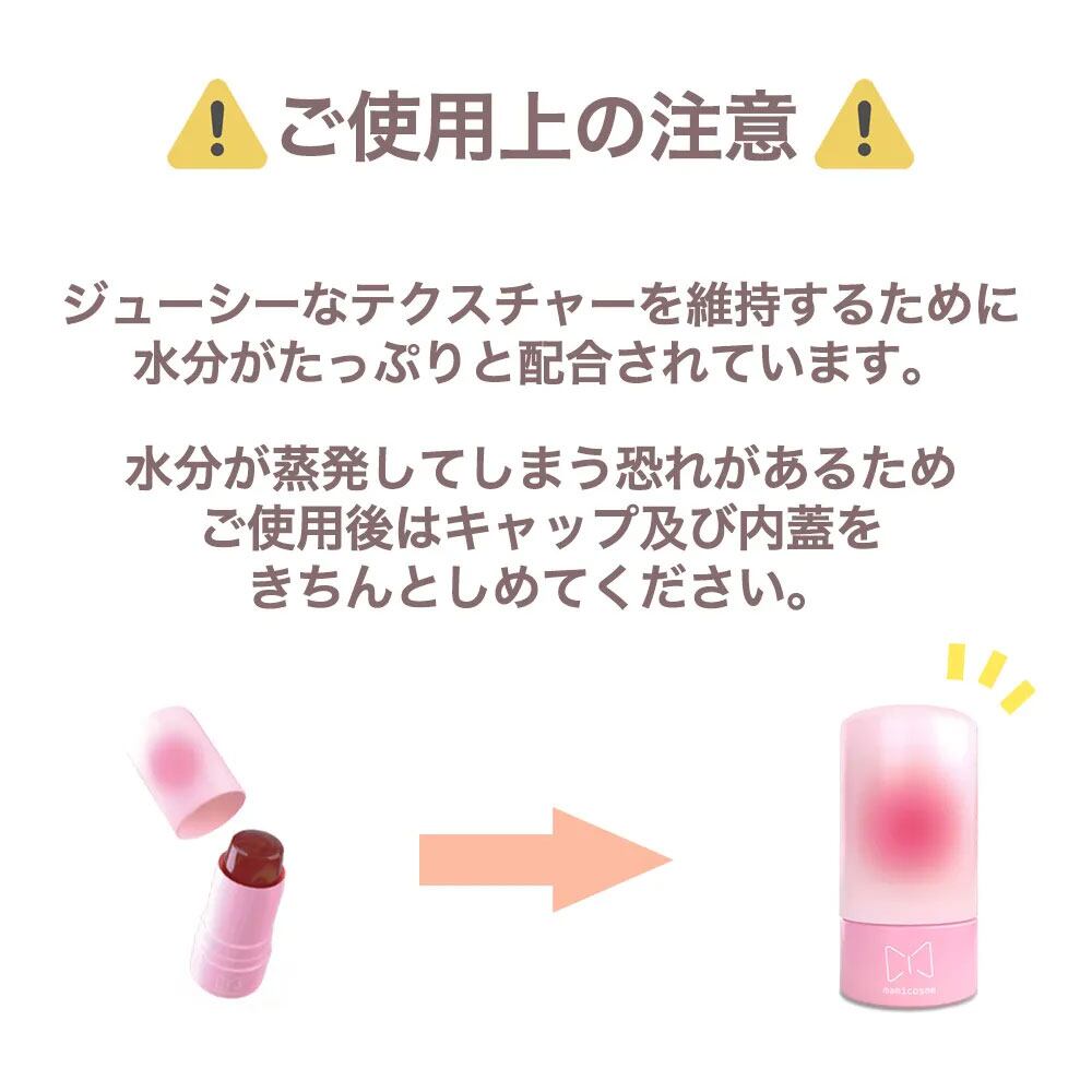 ●ぷにっとした質感と、はじけるジューシーカラーが特徴。じゅわっと内側から染み出すような発色で、自然でピュアな印象に。