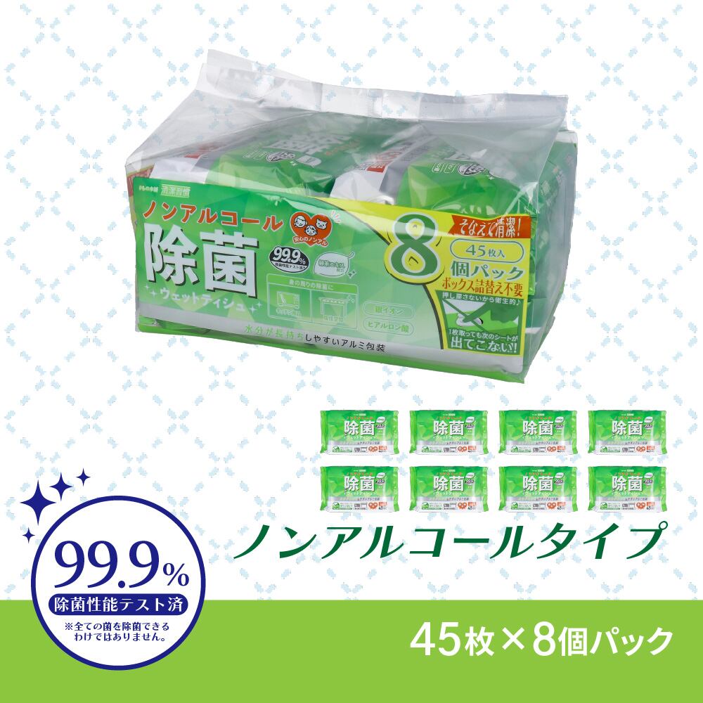 清潔習慣 除菌ウェットティシュ ノンアルコールタイプ 45枚入×8個パック