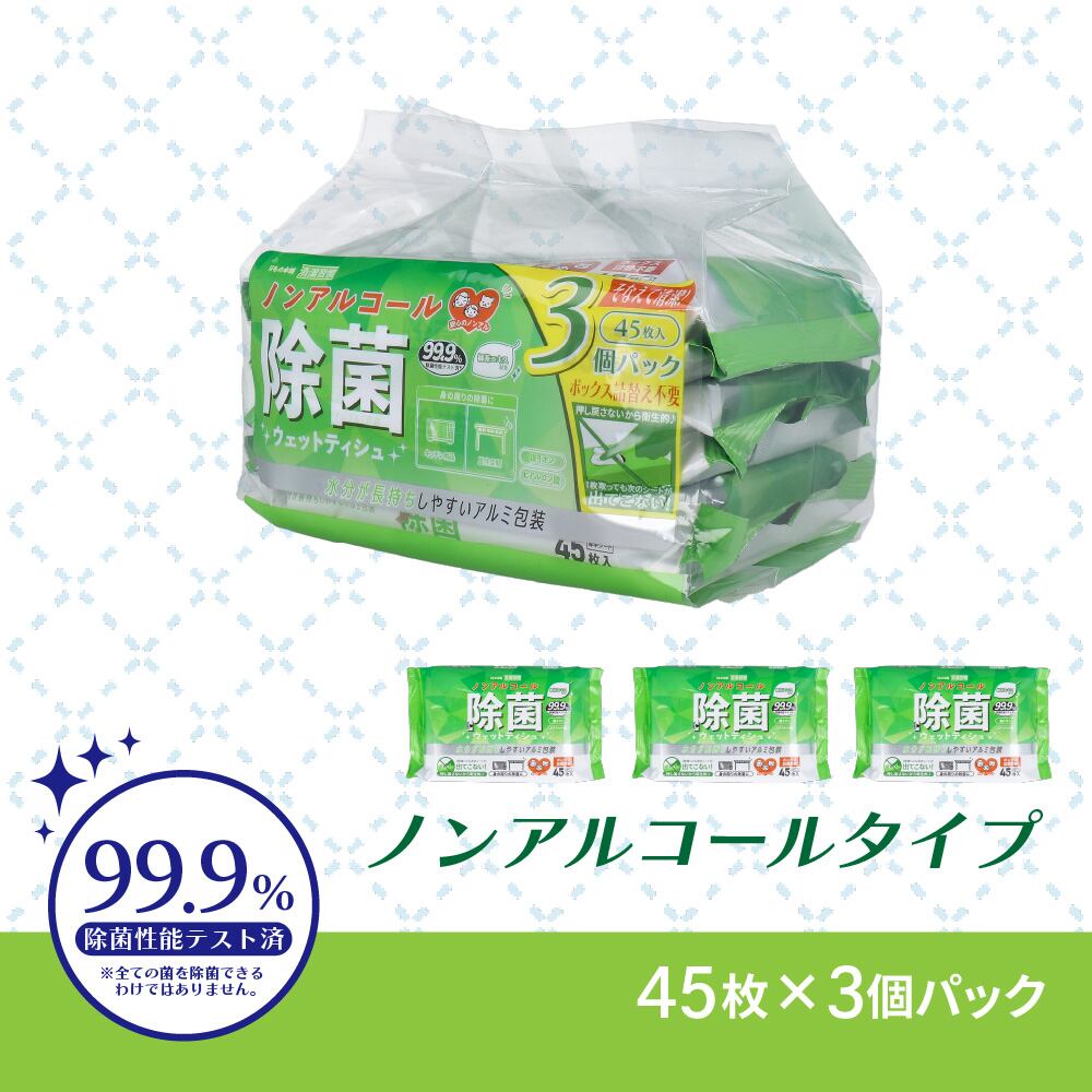 清潔習慣 除菌ウェットティシュ ノンアルコールタイプ 45枚入×3個パック