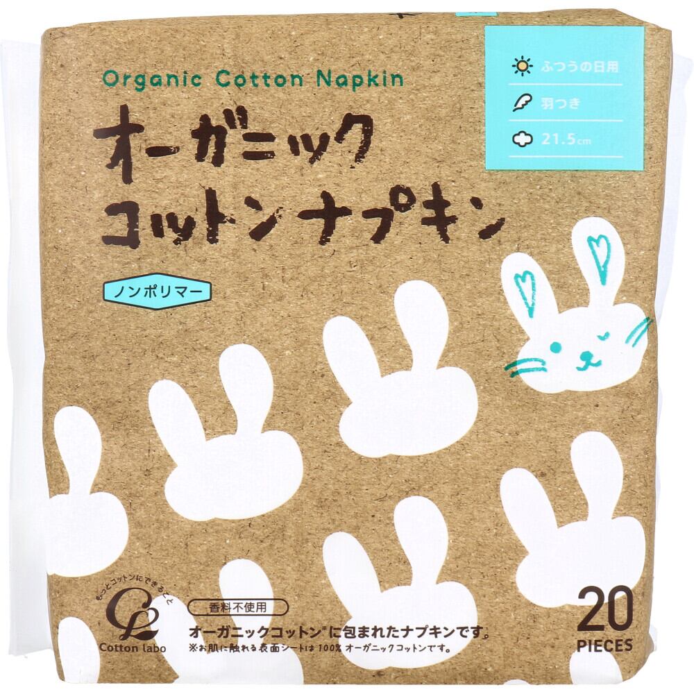 オーガニックコットンナプキン ノンポリマー ふつうの日用 羽つき 21.5cm 20個入