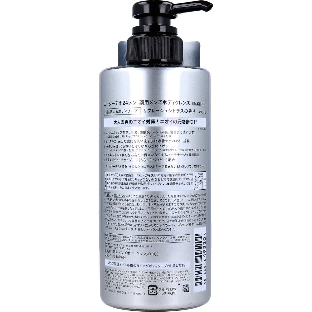エージーデオ24メン 薬用メンズボディクレンズ リフレッシュシトラスの香り 490mL