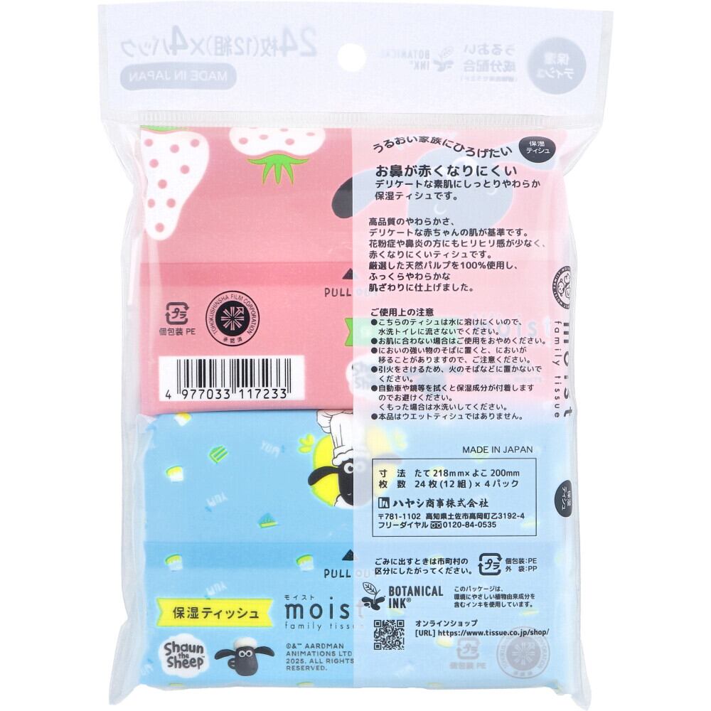 保湿ティシュ モイストファミリー ひつじのショーン 24枚(12組)×4パック
