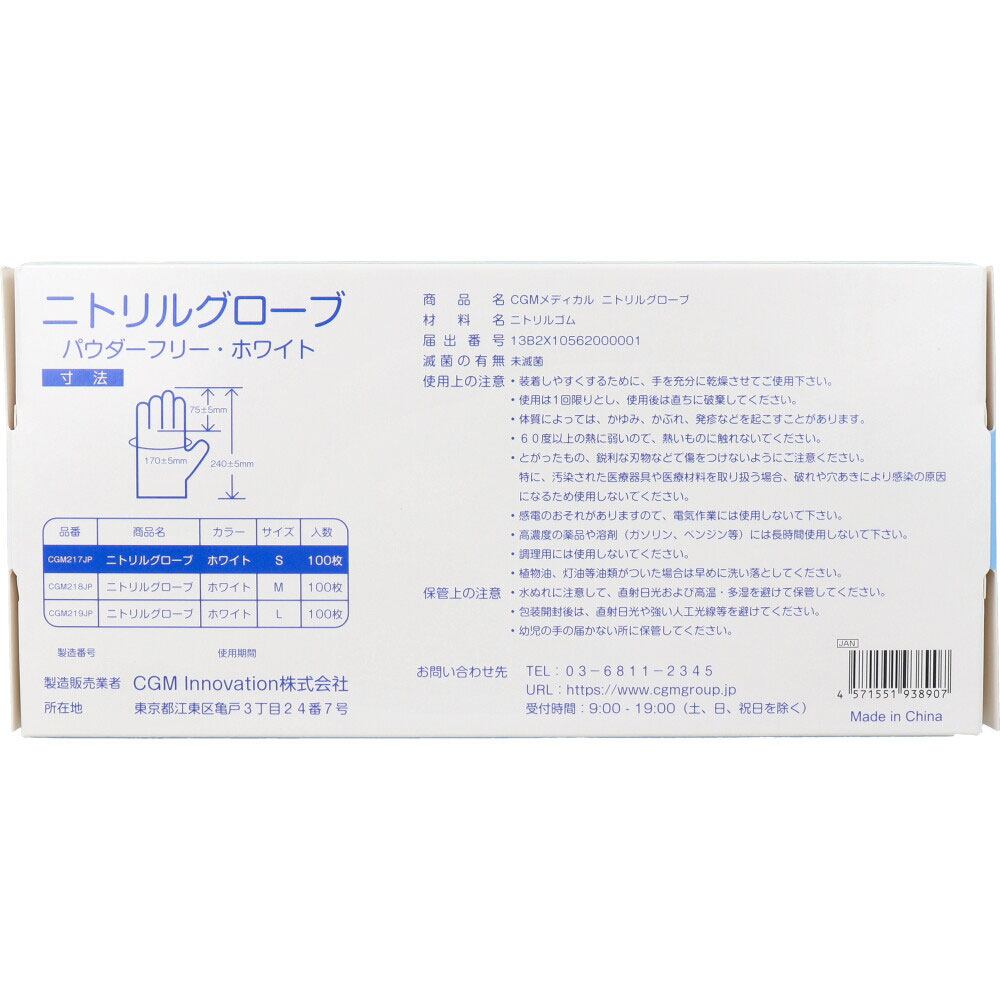 【業務用】CGMメディカル ニトリルグローブ パウダーフリー ホワイト Sサイズ 100枚入