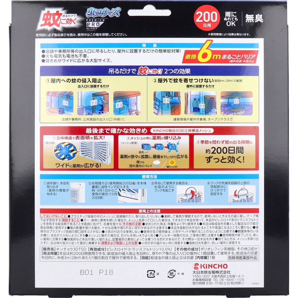 ・万一、身体に異常を感じた場合や、メッシュを誤って口にした場合は、できるだけ本品を持って本品がピレスロイド系のトランスフルトリンを含有する殺虫剤であるであることを医師に告げて、診療を受ける。
