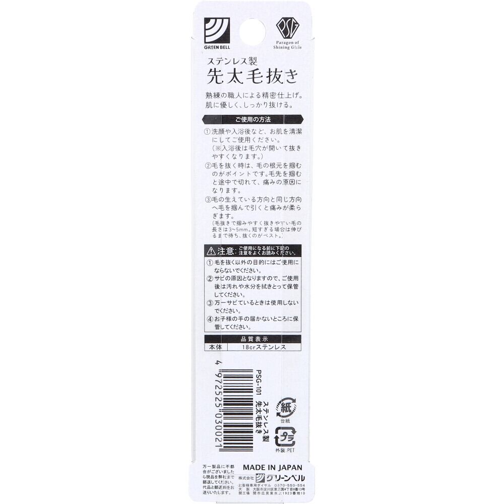 ステンレス製 先太毛抜き PSG-101