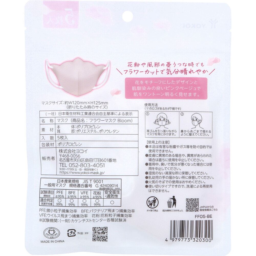 フラワーマスク Bloom(ブルーム) ピンクベージュ 5枚入