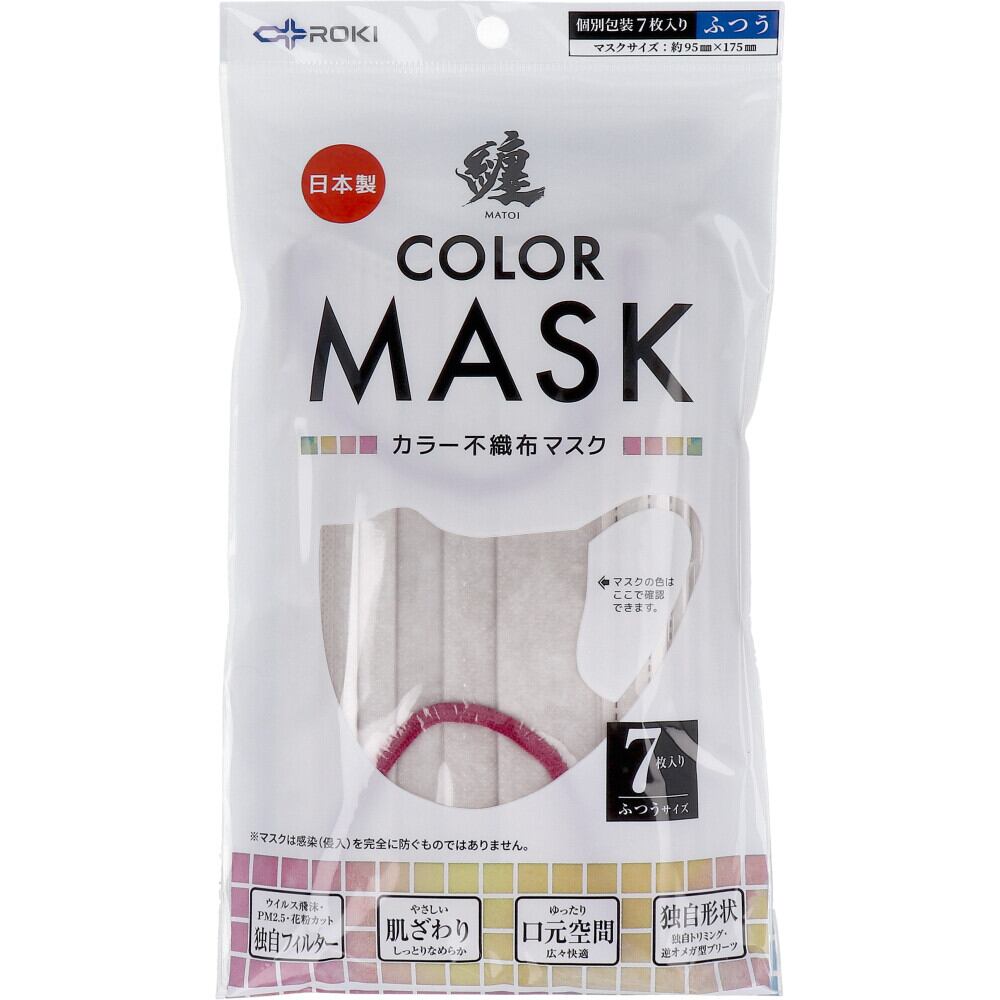 纏(MATOI) カラー不織布マスク ふつうサイズ シナモンベージュ×ワインレッド 7枚入