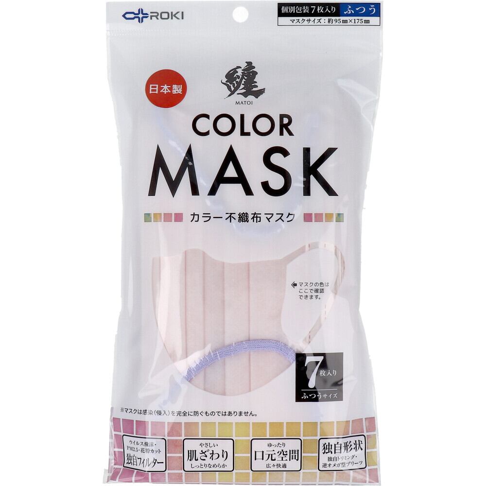 纏(MATOI) カラー不織布マスク ふつうサイズ アイシーピンク×ラベンダー 7枚入