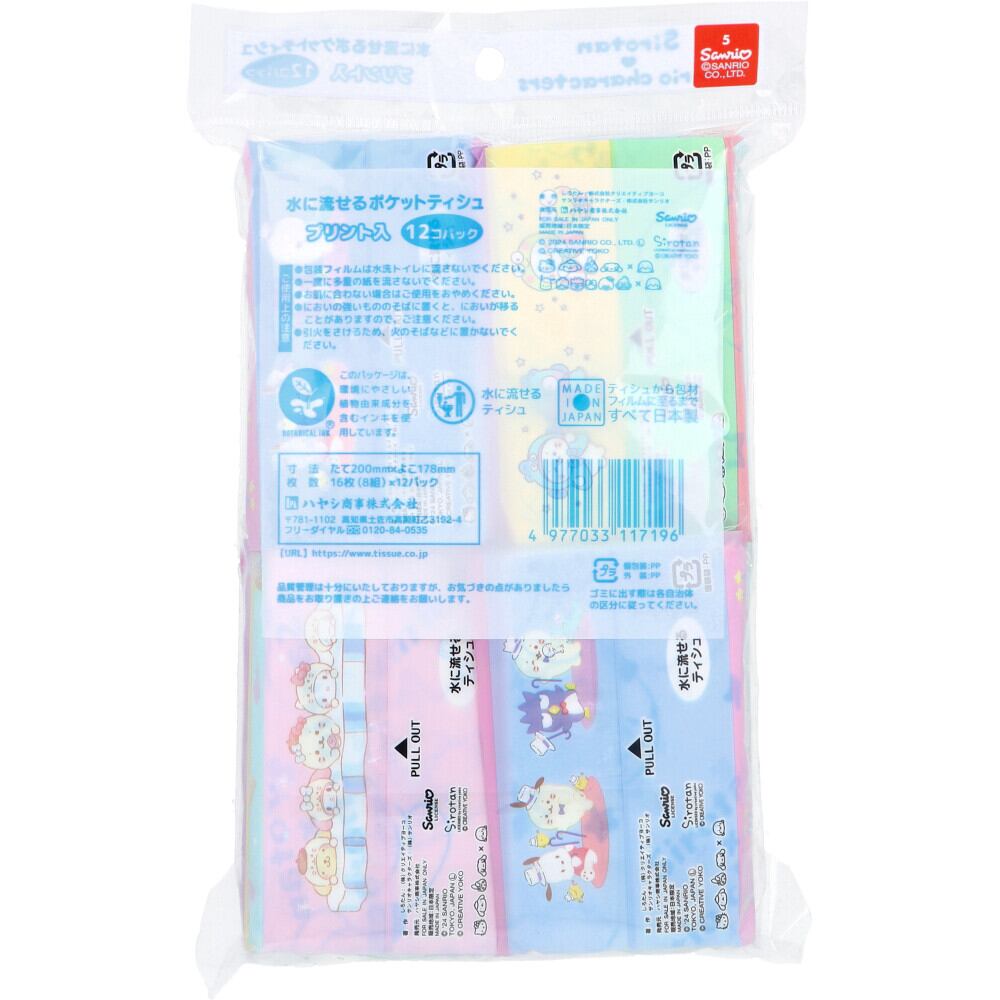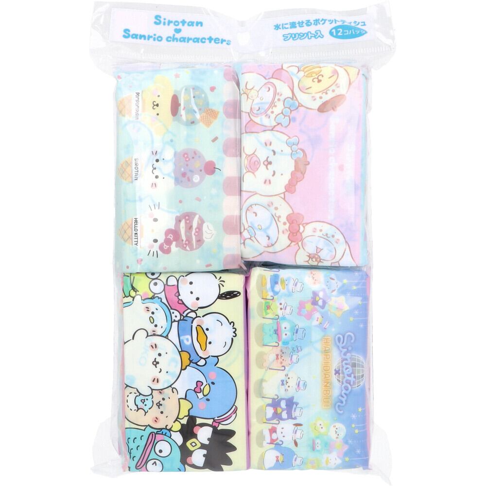 しろたん×サンリオキャラクターズ 水に流せるポケットティシュ プリント入 16枚(8組)×12個入