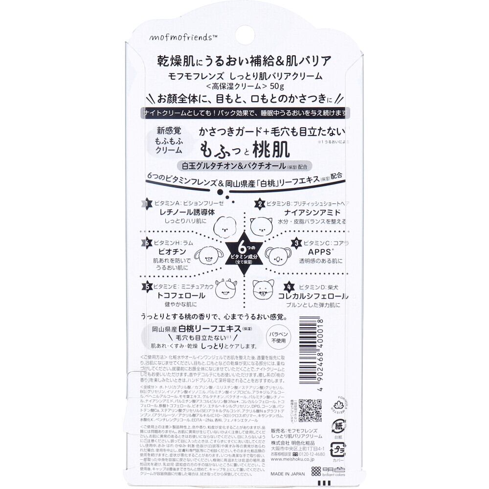 モフモフレンズ しっとり肌バリアクリーム 高保湿クリーム 桃の香り 50g