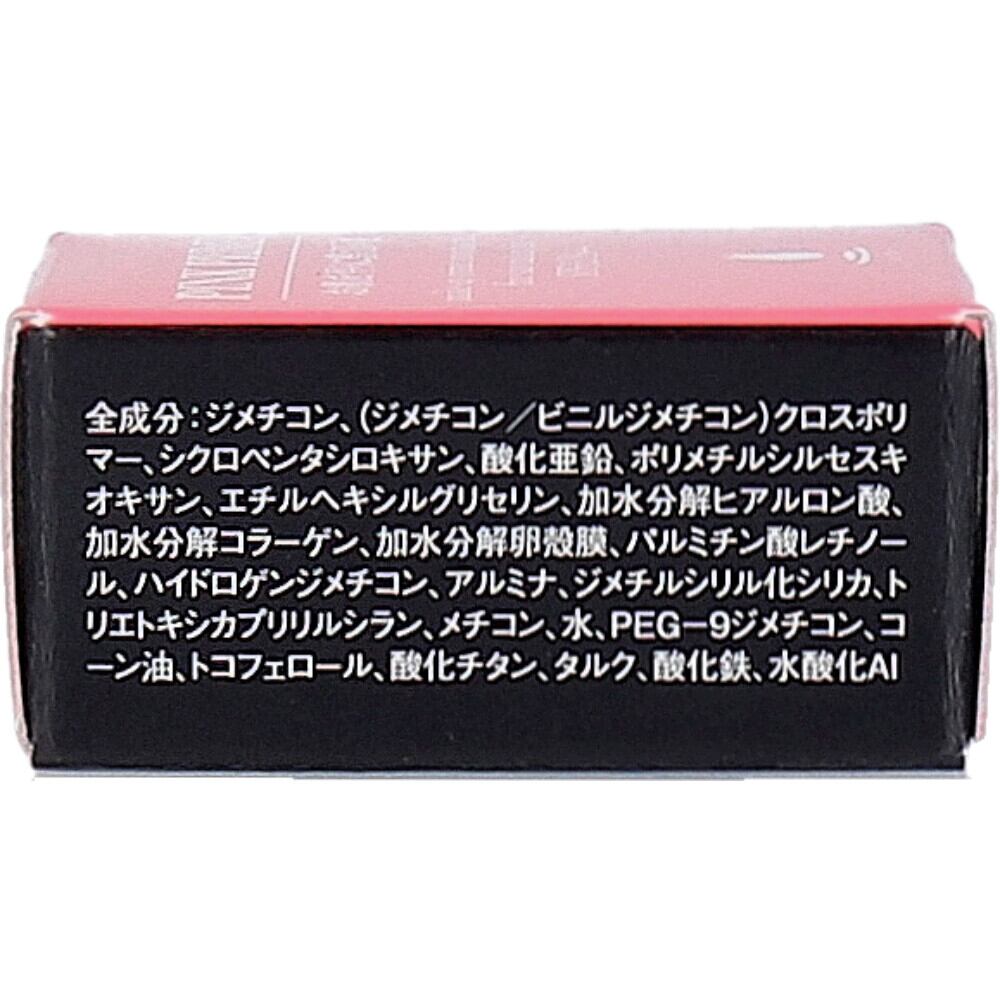 ジメチコン、(ジメチコン/ビニルジメチコン)クロスポリマー、シクロペンタシロキサン、酸化亜鉛、ポリメチルシルセスキオキサン、エチルヘキシルグリセリン、加水分解ヒアルロン酸、加水分解コラーゲン、加水分解卵殻膜、パルミチン酸レチノール、ハイドロゲンジメチコン、アルミナ、ジメチルシリル化シリカ、トリエトキシカプリリルシラン、メチコン、水、PEG-9ジメチコン、コーン油、トコフェロール、酸化チタン、タルク、酸化鉄、水酸化AI