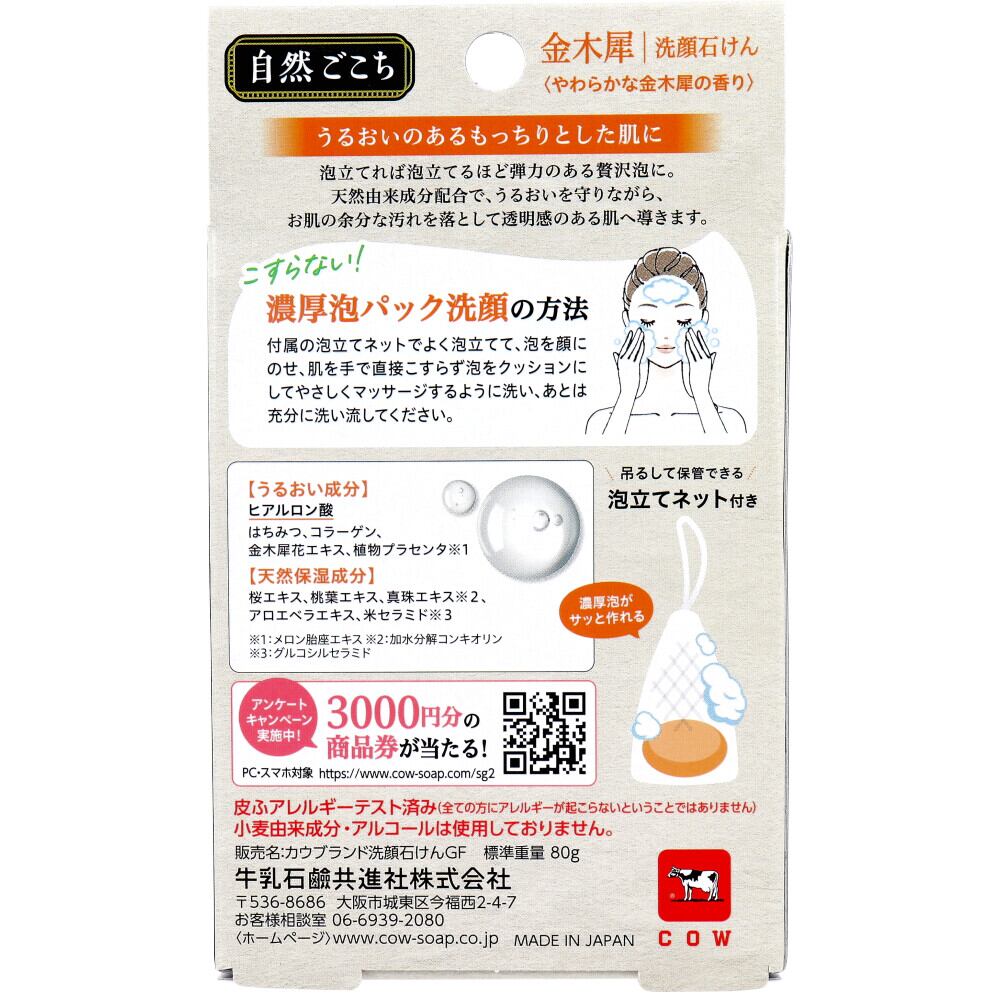 自然ごこち 金木犀 洗顔石けん 巾着型泡立てネット付 80g
