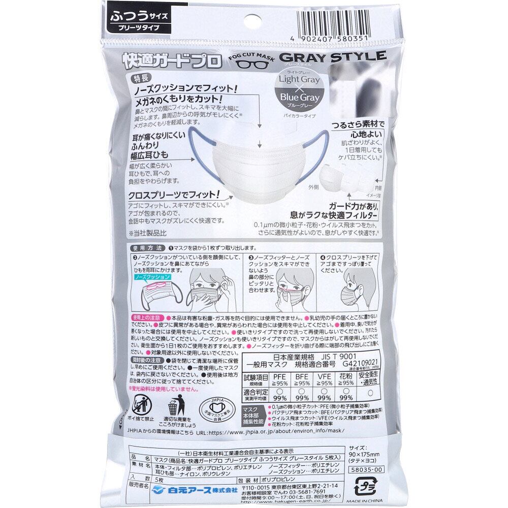 快適ガードプロ プリーツタイプ ふつうサイズ グレースタイル 5枚入