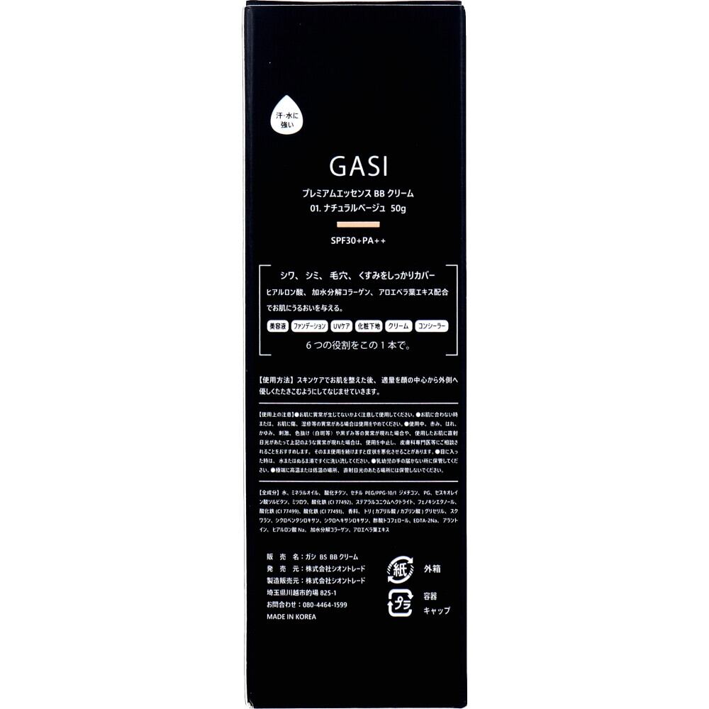 GASI(ガシ) アンチリンクル モイスチャライジング UVプロテクト BBクリーム BK 50g