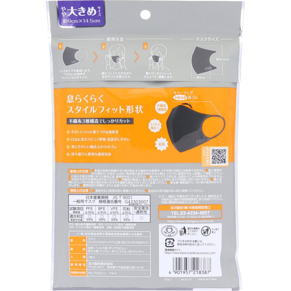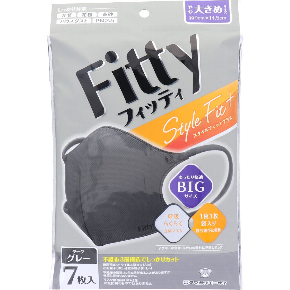 フィッティ スタイルフィットプラス 立体マスク やや大きめサイズ ダークグレー 7枚入