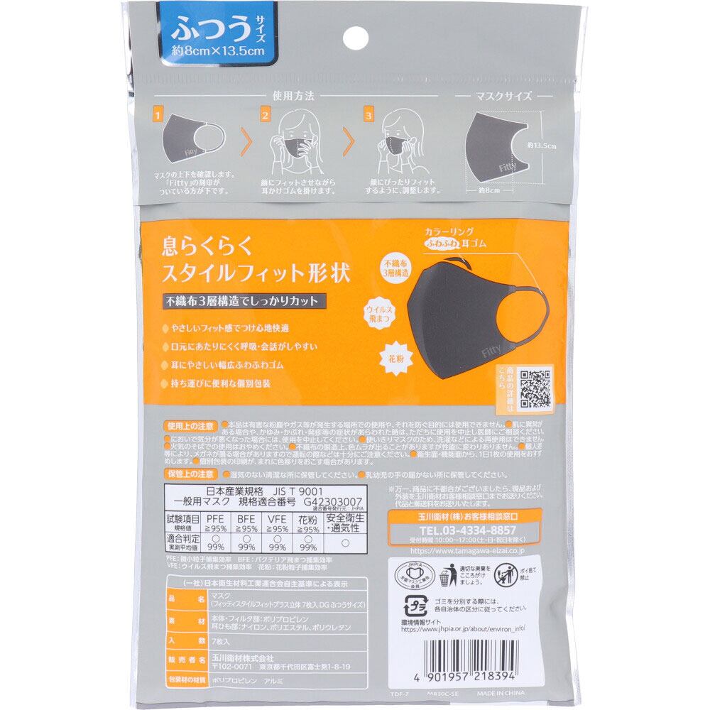 フィッティ スタイルフィットプラス 立体マスク ふつうサイズ ダークグレー 7枚入