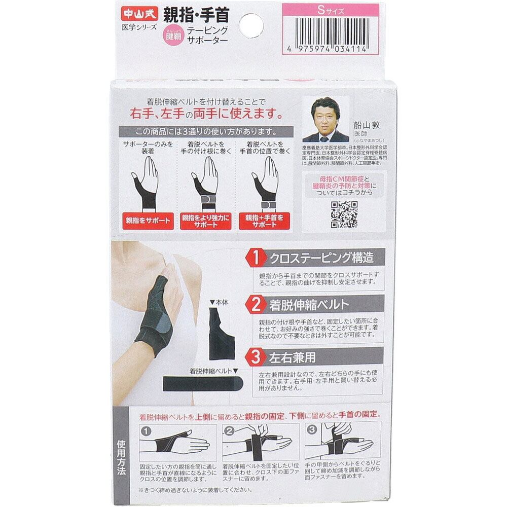 中山式 医学シリーズ 親指・手首テーピングサポーター 左右兼用 Sサイズ 1枚入