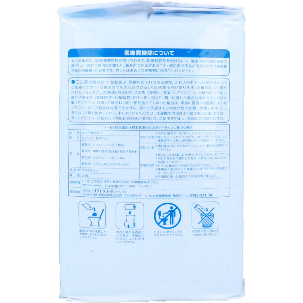 ・紙おむつ、包装紙は、誤飲のおそれのある幼児、ご老人のお手元に届かないようご配慮ください。