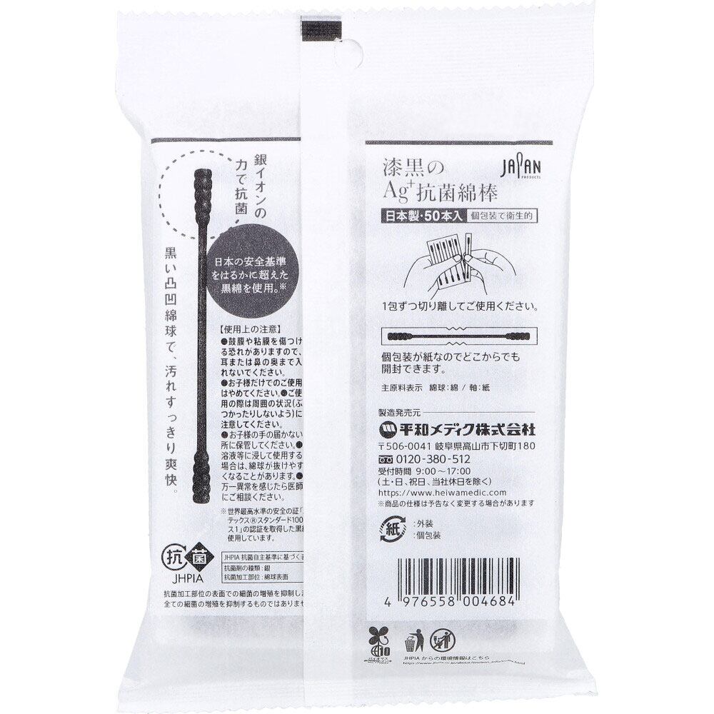 漆黒のAg+抗菌綿棒 個包装 50本入