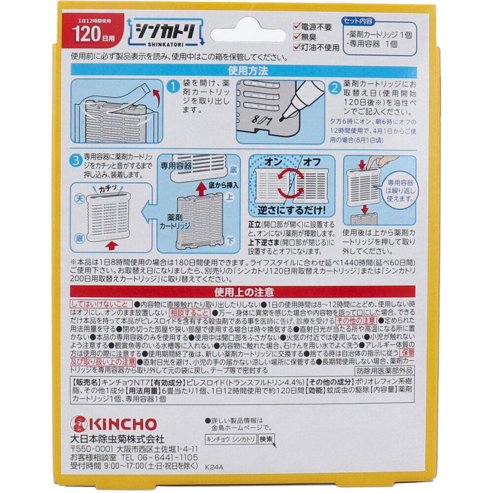 ※1日8時間使用の場合は180日間使用できます。ライフスタイルに合わせ延べ1440時間(延べ60日間)ご使用下さい。お取替え日になりましたら、別売りの 「シンカトリ120日用取替えカートリッジ」または「シンカトリ200日用取替えカートリッジ」に取り替えてください。