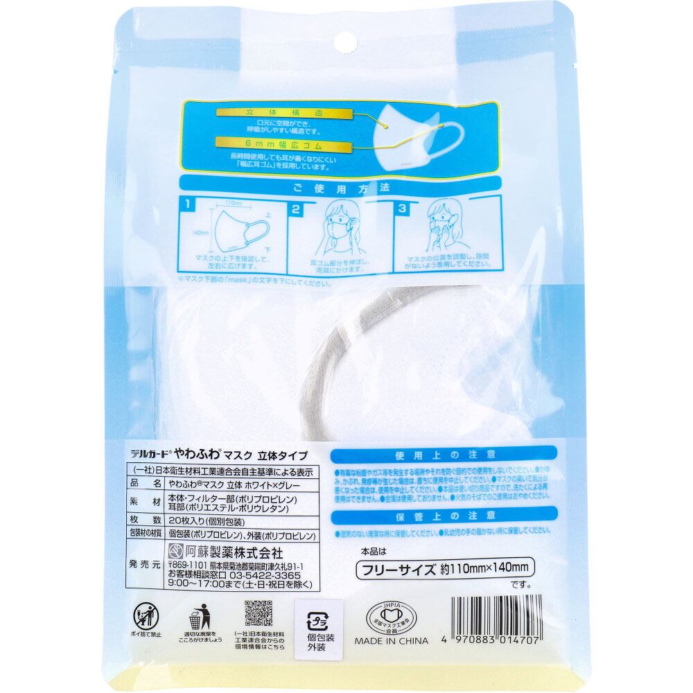 デルガード やわふわマスク 立体タイプ ふつうサイズ 個別包装タイプ ホワイト×グレー 20枚入