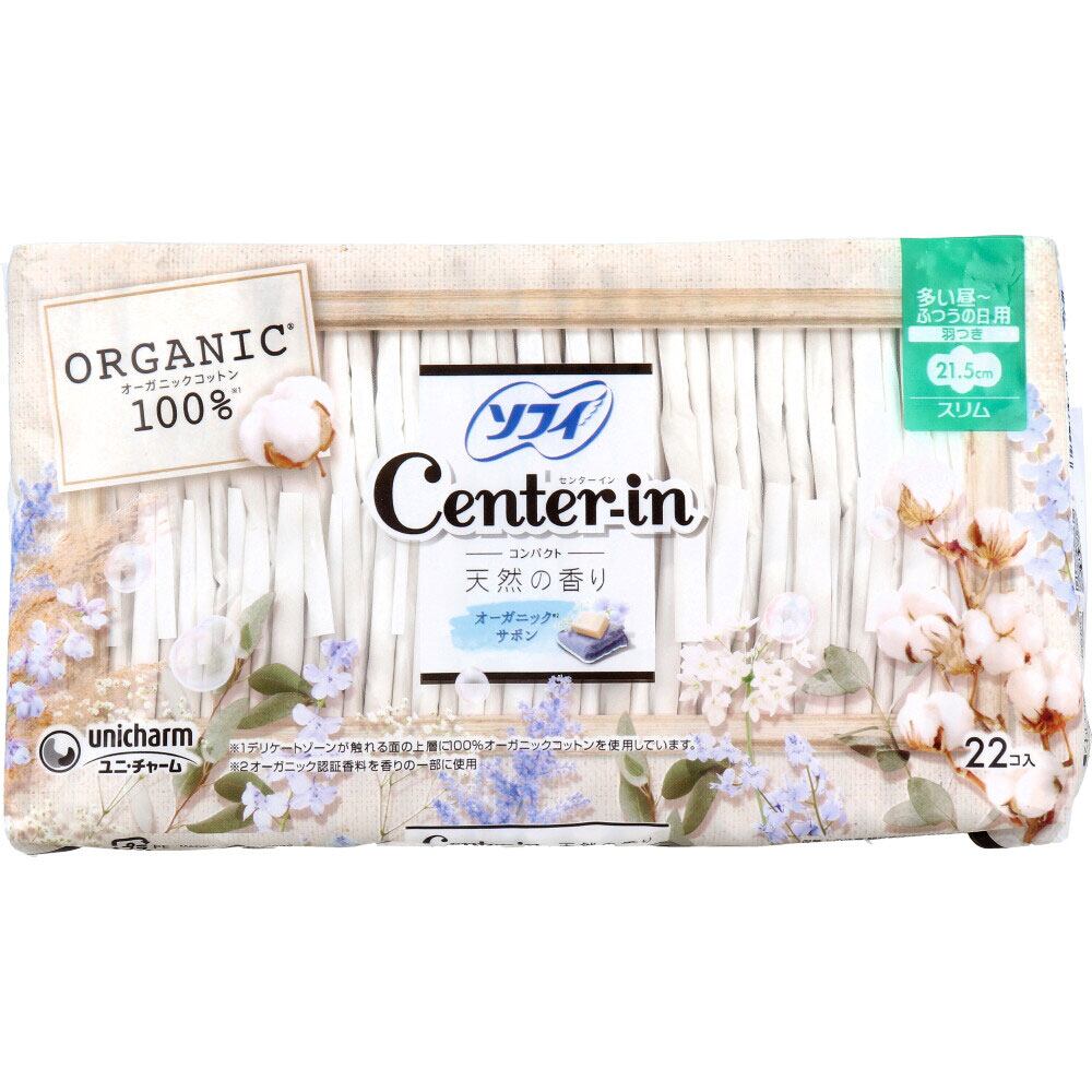 ソフィ センターイン コンパクト1/2 多い昼-ふつうの日用 スリム 羽つき オーガニックサボン 22個入