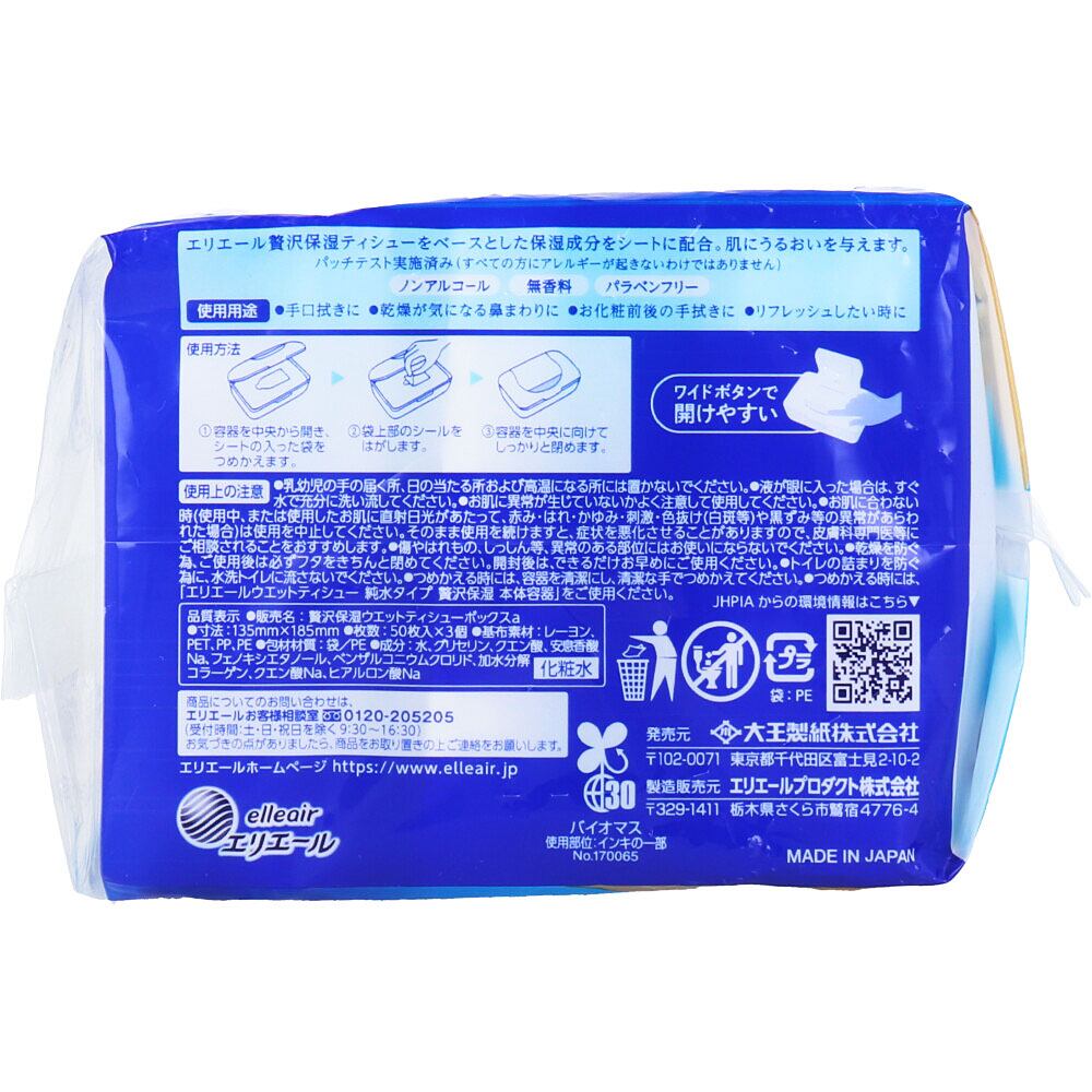 エリエール ウエットティシュー 純水タイプ 贅沢保湿 ボックス詰替用 50枚×3個パック
